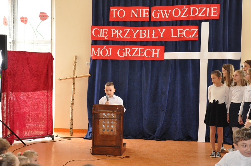 W środę 28 marca w naszej szkole odbyło się przedświąteczne spotkanie wszystkich nauczycieli i uczniów. Spotkanie to przygotowała Pani Dorota Ogorzały, Pani Maria Tokarczyk oraz Pani Agata Nicpońska wraz z klasą III, IV, V i VI. Oprócz pięknego śpiewu było dużo tekstów mówiących o zmartwychwstaniu Jezusa, które wzywa nas do poprawy życia. Na zakończenie akademii Pani Dorota, w imieniu Pani Dyrektor, złożyła wszystkim życzenia spokojnych i radosnych świąt.